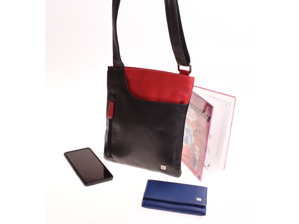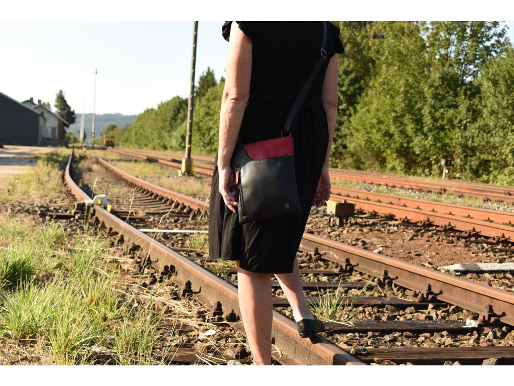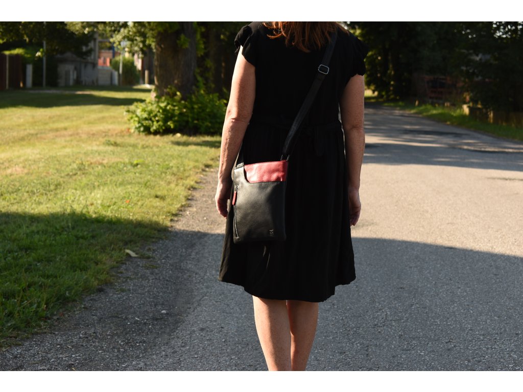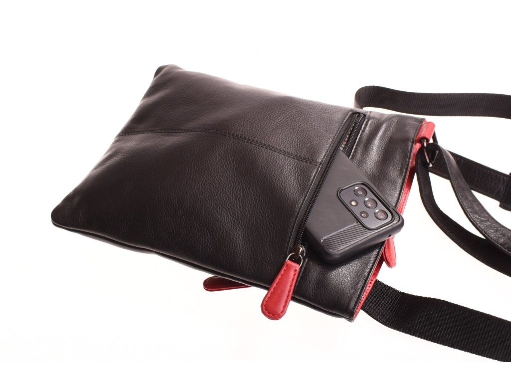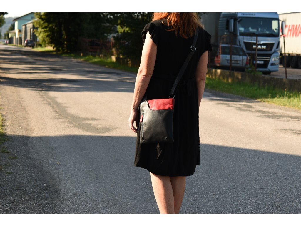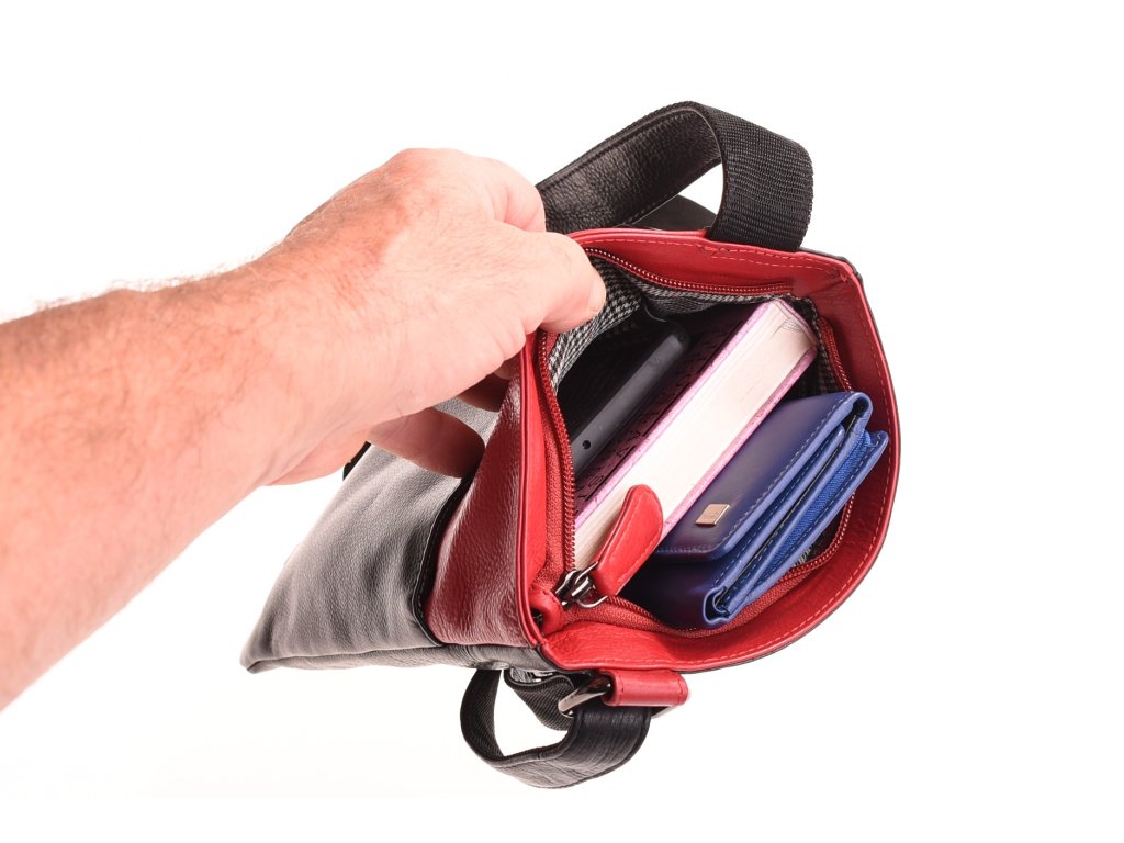 - crossbody kožená kabela černá v kombinaci s červenou