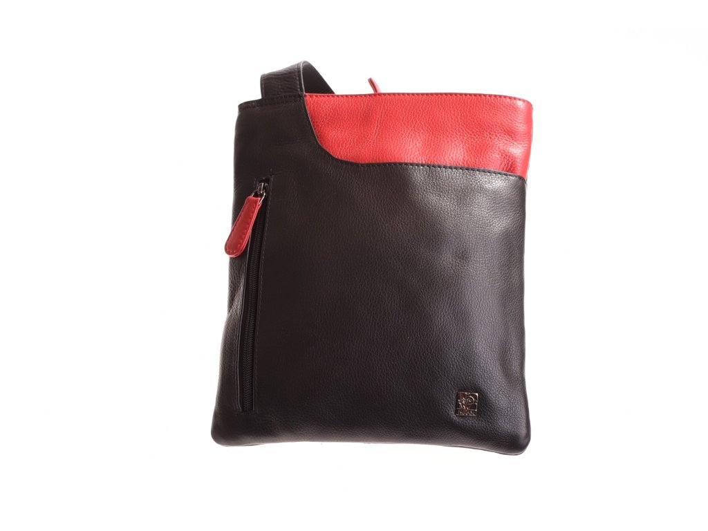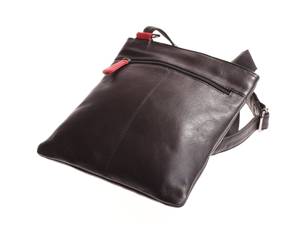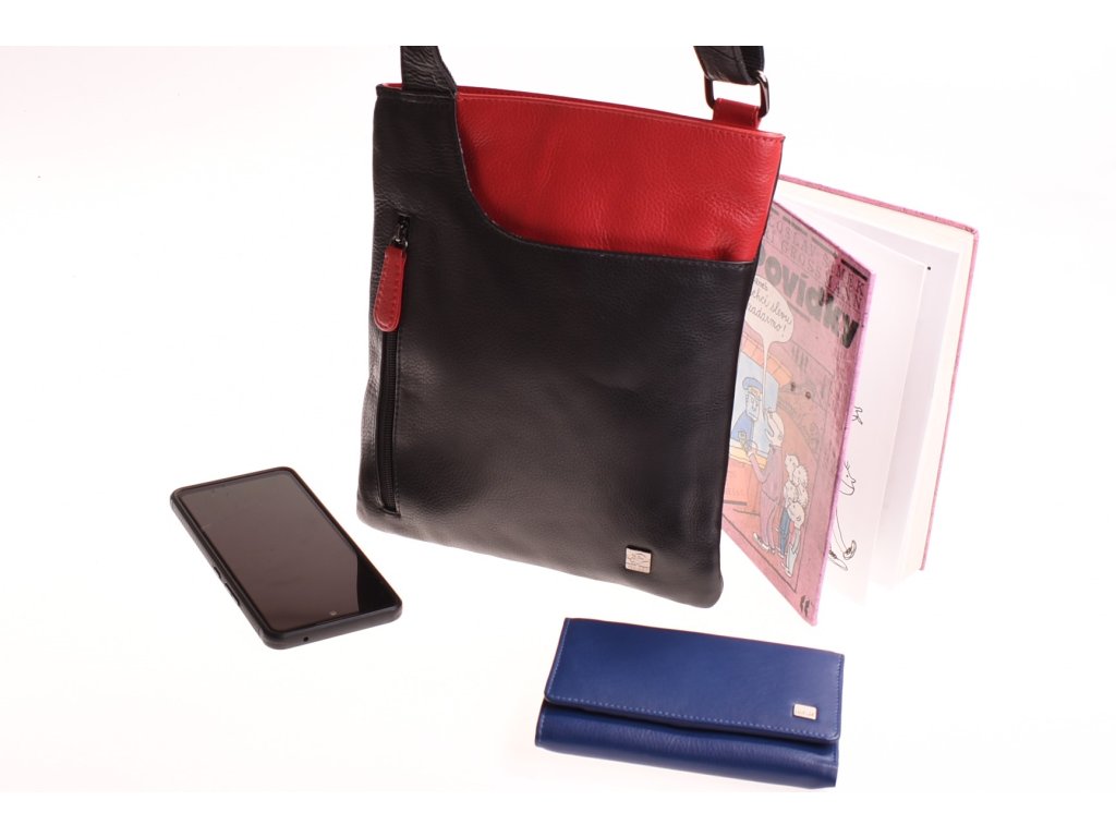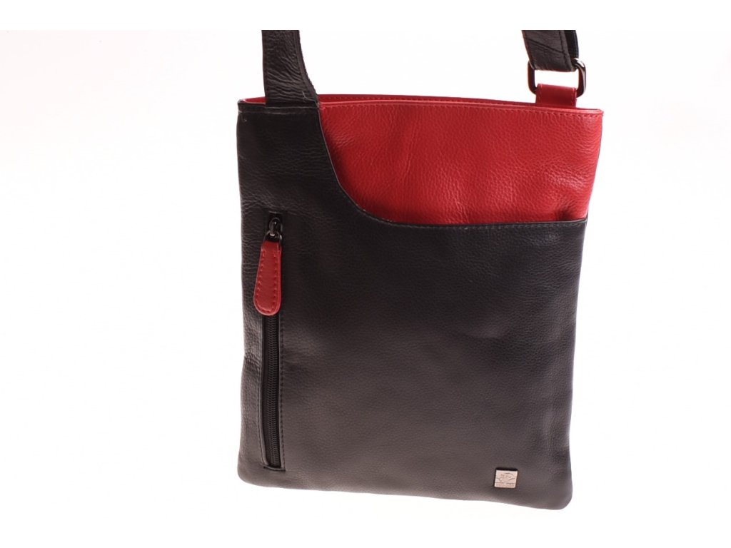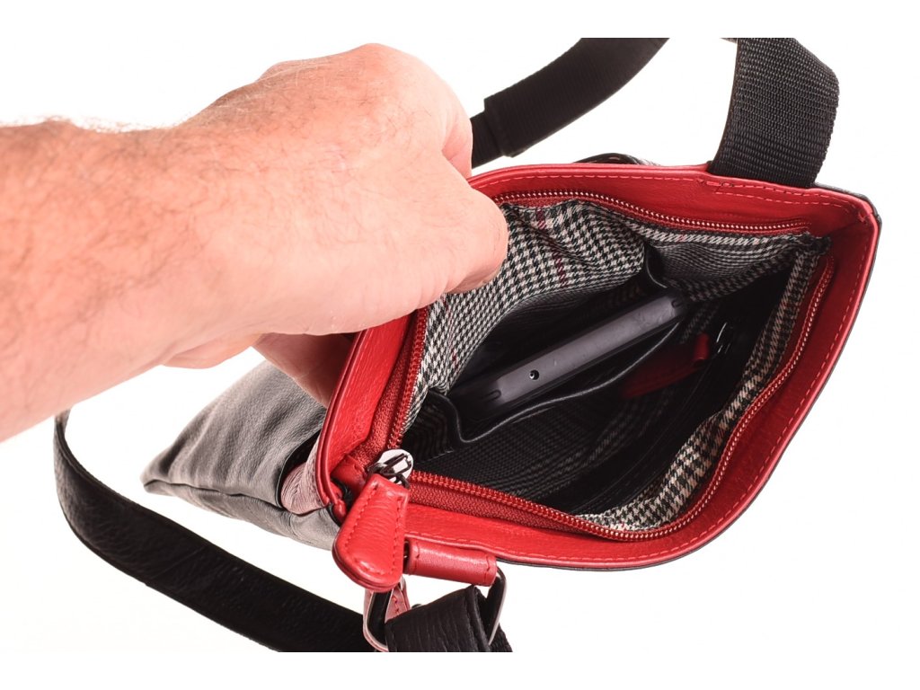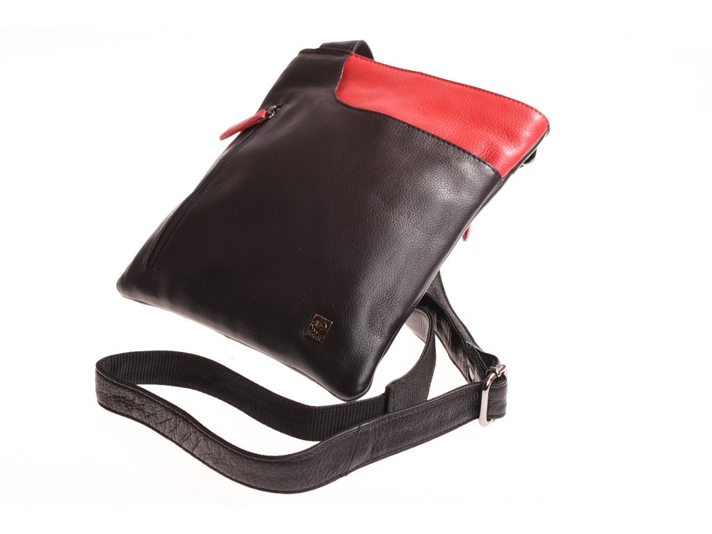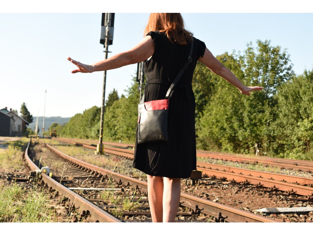 - crossbody kožená kabela černá v kombinaci s červenou