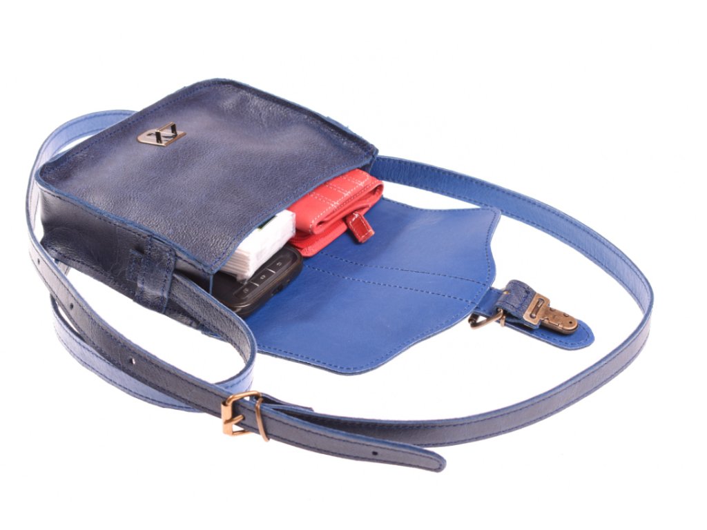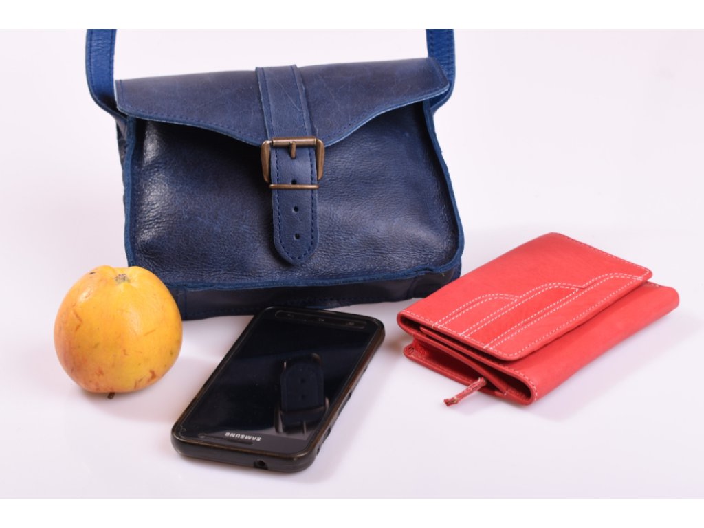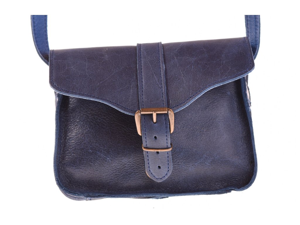 - menší dámská kožená kabelka modrá
