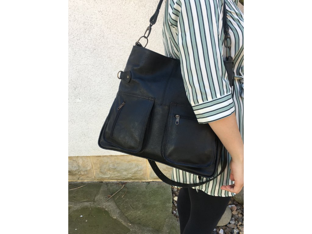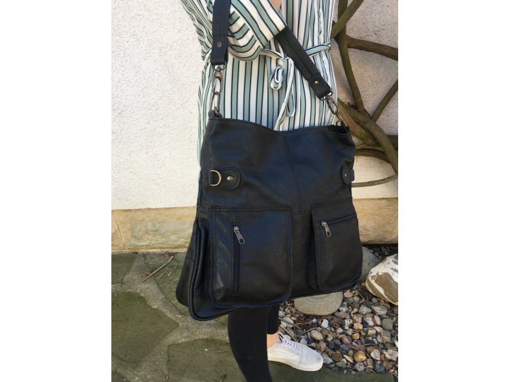 - prostorná kožená kabelka dámská černá