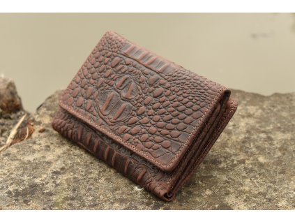 Dámská kožená peněženka - psaníčko v hnědé barvě je vyrobeno z přírodní usně - hovězina broušená voskovaná, matná s designem kroko.