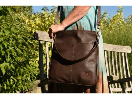 Elegantní dámská kožená kabelka formátu A4 do práce i do města, ve hnědé barvě, vyrobena ručně z přírodní kůže.