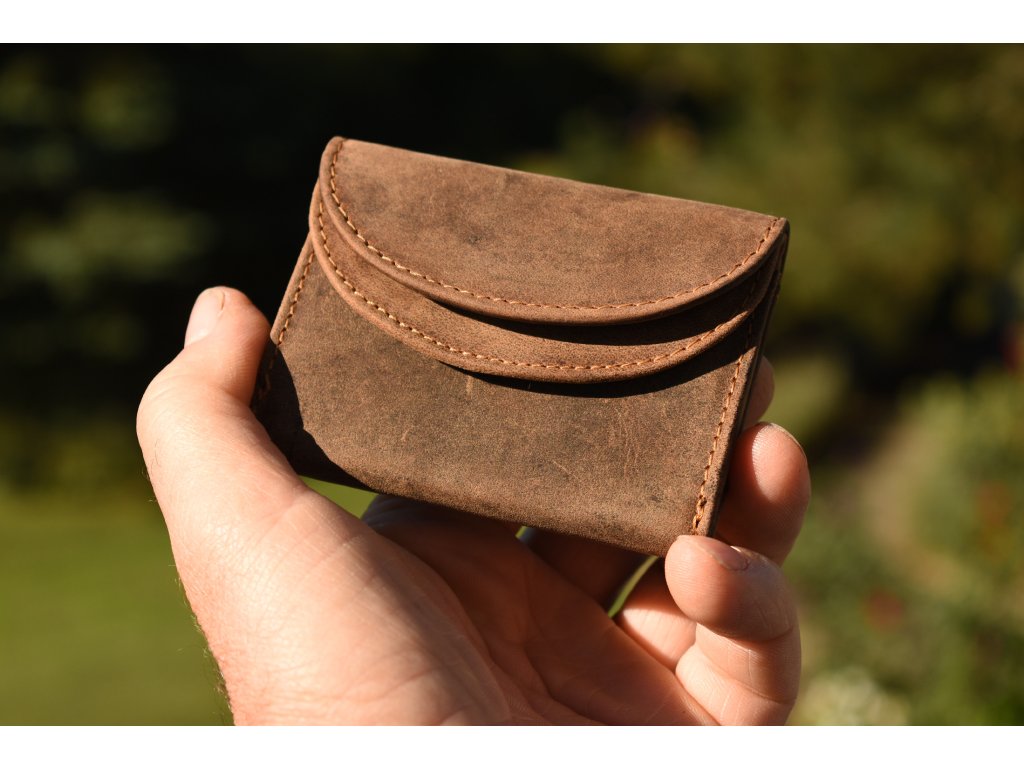 Dámská/Pánská mini kožená ručně vyrobená peněženka KUBÁT - Ema |hnědá| 7140542Hun