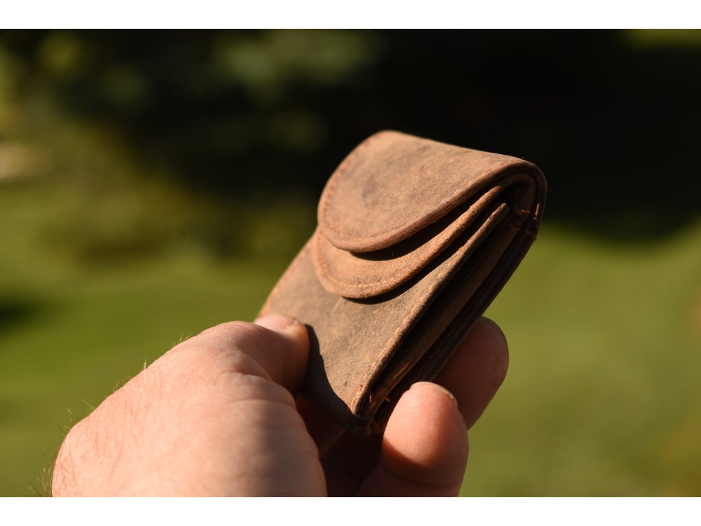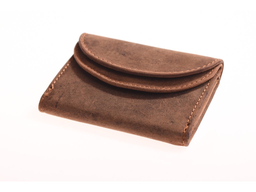 pánská dámská kožená malá peněženka v hnědé broušené kůži