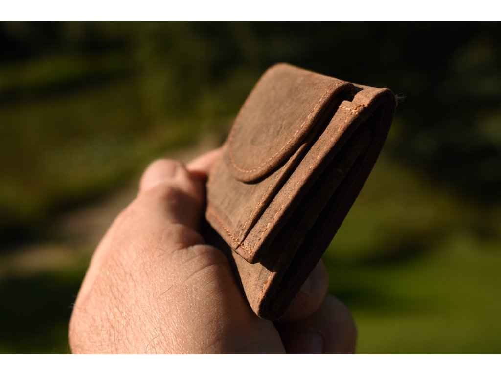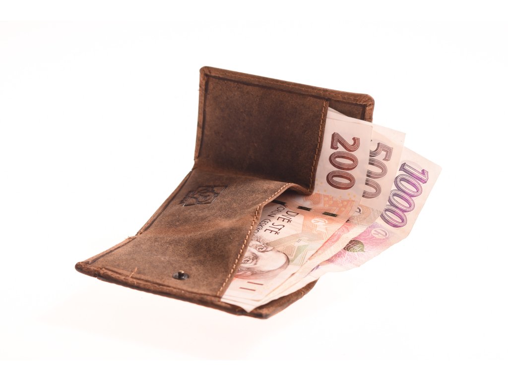 Pánská dámská kožená malá peněženka v klasickém provedení naležato v hnědé barvě, vyrobená ručně z přírodní broušené kůže.