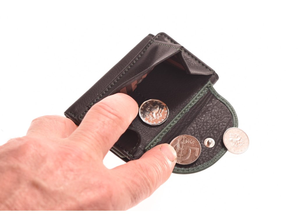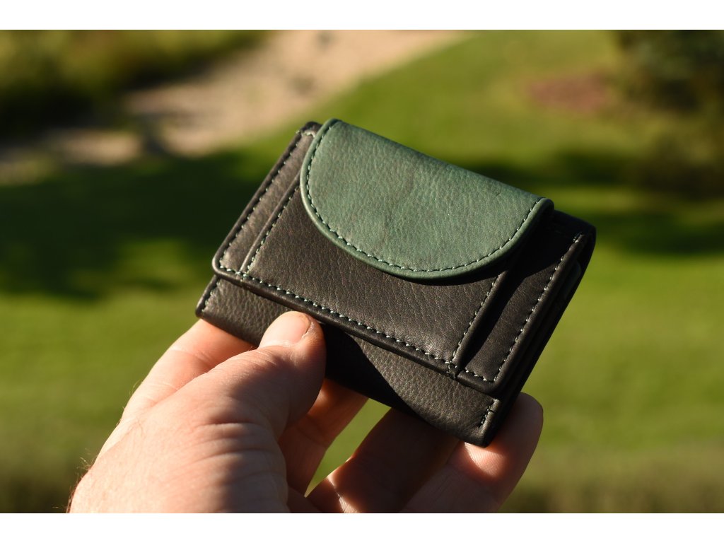 Dámská/Pánská mini kožená ručně vyrobená peněženka KUBÁT - Mia |zelená-černá| 71404812