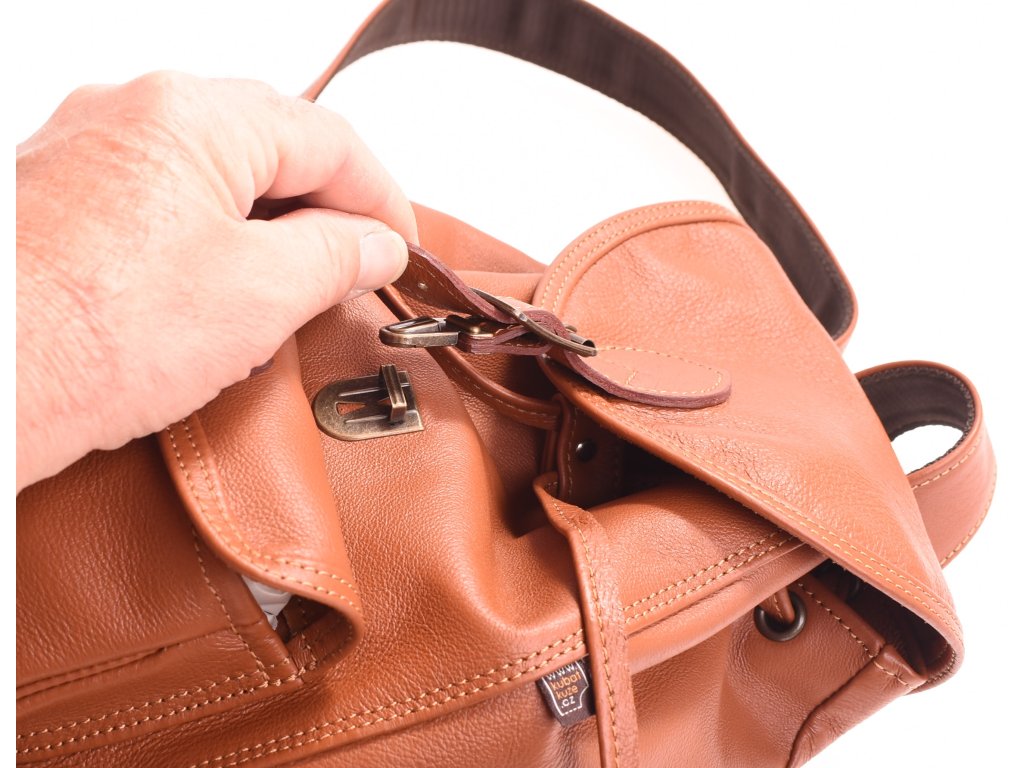 Tři praktické kapsy uzavíratelné klasickými přezkami, vnitřní zipová kapsa, vyztužená záda a nastavitelná délka popruhů. Horní ouško pro zavěšení a bavlněná podšívka pro větší komfort. Batoh pojme dokumenty formátu A4 (s omezením), váží jen 800 gramů a zvládne nosnost až 3 kg – ideální poměr mezi funkčností a lehkostí.