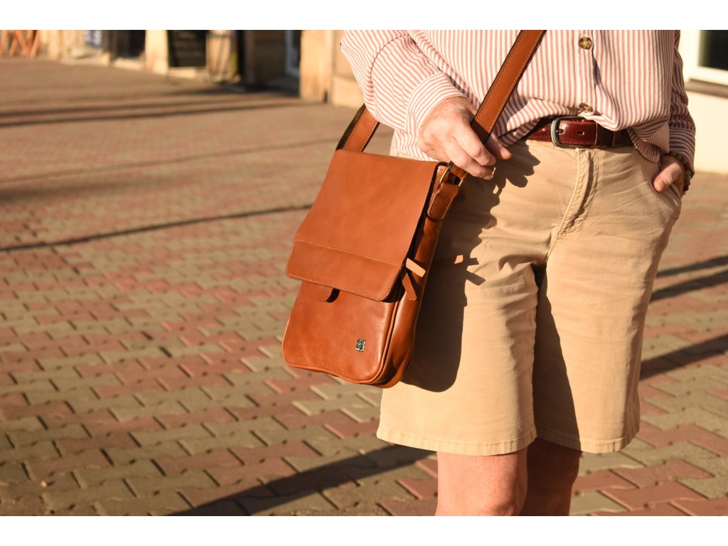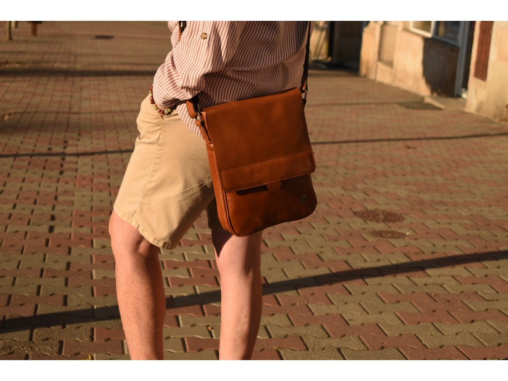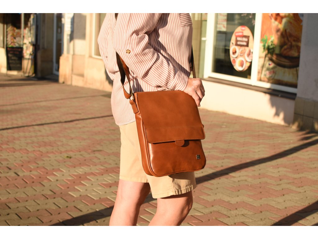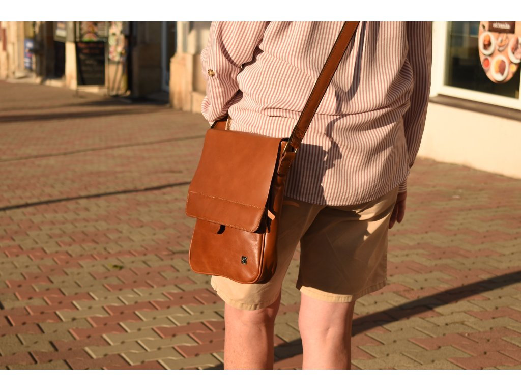 - pánská kožená taška přes rameno koňaková