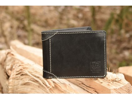 Pánská kožená peněženka v klasickém provedení naležato, v černé barvě , vyrobená z přírodní olejované kůže.