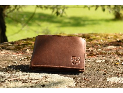 Pánská kožená peněženka v klasickém provedení naležato, v hnědé barvě, vyrobená ručně z přírodní kůže.