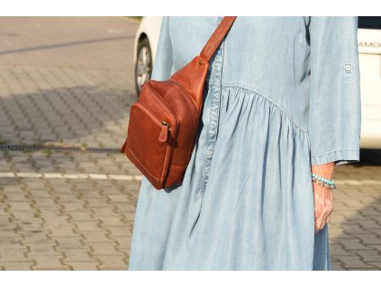 Pánská kožená bondy taška přes rameno v koňakové barvě, vyrobená ručně z robustní přírodní kůže. Nový model vhodný do práce i do přírody.